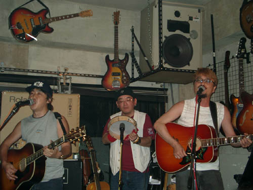 ノリノリで超ゴキゲンなライブさせてもらいました。特に左の人はチャンピオンで6弦切ってリードが出来なくなりました。(爆) 岡山のみなさんおおきにでした。 |