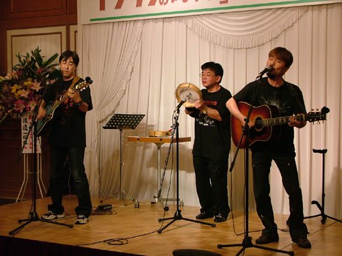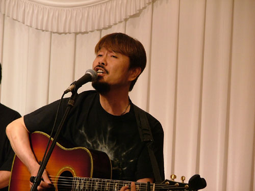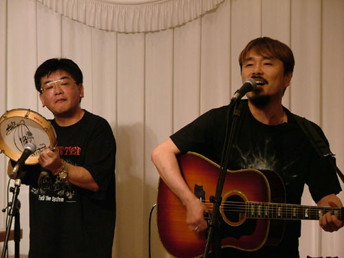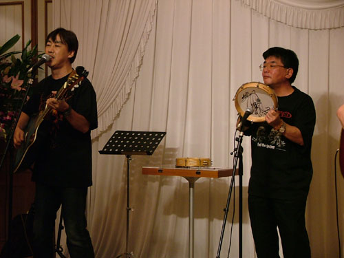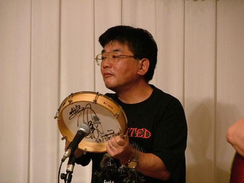 演奏後、アリスのきんちゃんにマイクが向けられた時、「僕は彼をよく知ってるんですよ、アマチュアではタンバが一番うまい!」とお誉めにあずかったのはこの人。 |