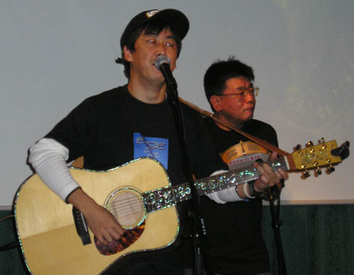 | 3曲目は「散りゆく花」。PM11:55過ぎのスタートで、カウントダウンの瞬間まで歌いつづけます。そして会場から5・4・3・2・1!!の声。新年明けましておめでとう!今年もヨロシクお願いします。 |