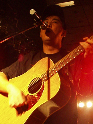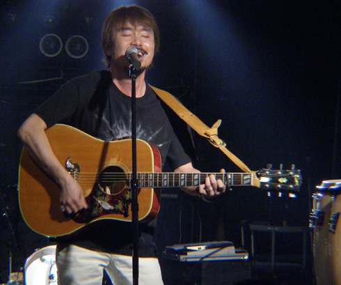 GIBSON BLUERIDGE。ELSEの柔軟剤!(爆) 他の2人がかっこいいステージを繰り広げるので、仕方なく独り軟派なイメージを通してきましたが(笑) 独りになったら硬派なイメージでいくと言ってましたが・・・。(爆) |