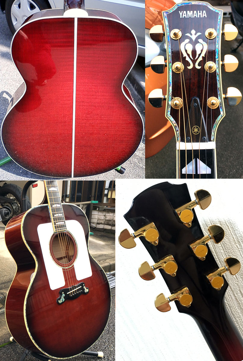 YAMAHAの中で一番好きなCJシリーズ。最高グレードCJ-52仕様にしました。指板周りにメキシコ貝バインディング、ブリッジインレイ、ヘッド周りの貝装飾。あとピックガードを交換して、MISIのピックアップ付けました。ジャンボボディの重低音!最高です。