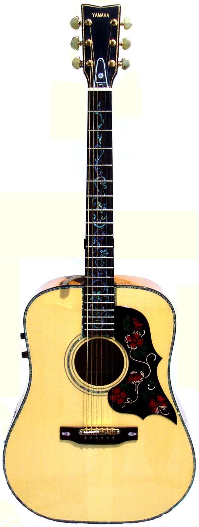 既に1本持っているのに豪華なメイプルで作られたこのギター、最高の音色にもう1本買ってしまいました。理由はチュンOマチックにしてみたかったからです。ブリッジを掘ってTOMを着けました。とは言ってもGIBSONには似ても似つかないデザインなのでYAMAHAの輸出モデルのデザインにしました。ブリッジにインレイ、ヘッドを切ってヤマハ形に。ロゴも入れてロッドカバーやピックガードもヤマハのモノにしました。バックのメイプルが少し白いので、コアっぽく少し着色してみました。YAMAHAのプリアンプも装着してライブ仕様です。 |