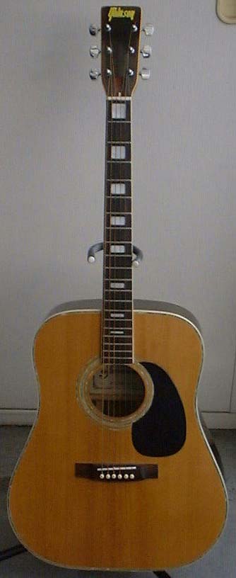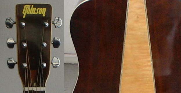 ご覧下さい!この豪華なバインディング!サウンドホール周りはアバロン3本ラインです。3ピースバックの継ぎ目にもしっかり入っております。バックのセンターはメイプルですよ!ポジションマークも白蝶っぽい豪華なマークです。音は薄っぺらいですが、乾いたG社系の音です。木曾鈴木他結構有名所が作っているという事で興味本位で入手しました。値段の割にはパフォーマンスの高い良品ではないでしょうか? |