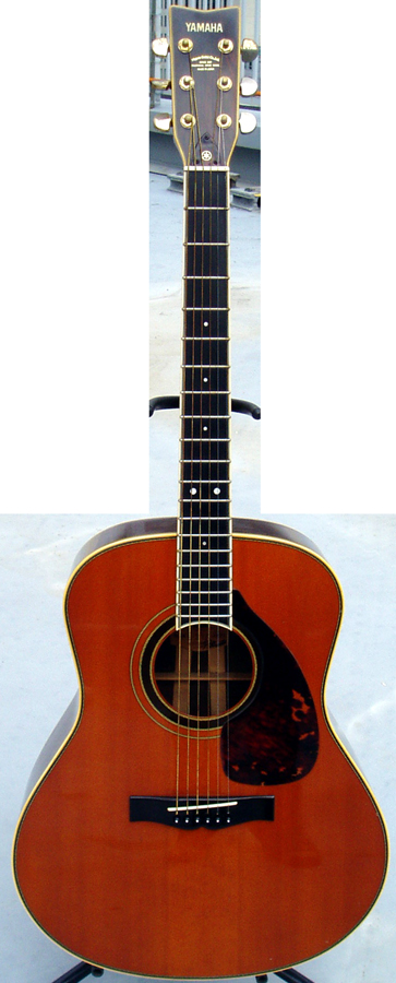 「まさにギターの宝箱や!」と言える初期L−31Aを入手しました。まず表板は初期物のみ「えぞ松」です。えぞ松は現代ではもう手に入りませんな。サイド・バックは言わずと知れた「ハカランダ」。輸出禁止でもうほとんど手に入りませんな。そしてネックは「ホンジュラスマホガニー」。ハカランダに続き近年輸出禁止になった木材です。まだ今のところ入手できるようですが、どんどん入手困難になるでしょう。そしてピックガードが本鼈甲です。鼈甲は入手困難ではないけれど、高額すぎてこんなに大きなピックガードに使ったりしないですな。これがヤマハ純正で付いているところがL−31Aの凄いところですな。あとは当然ながら、皮ラベルに「テリー中本」氏のサインのギターであること。77年製でカスタム並みに希少なヤマハですね。後期モノとはホールやブレーシングの位置も違うので音作りが全然違うと、某ホームページに書かれてました。実際低音のメチャクチャ効いた凄いギターです。これも家宝にします。 |