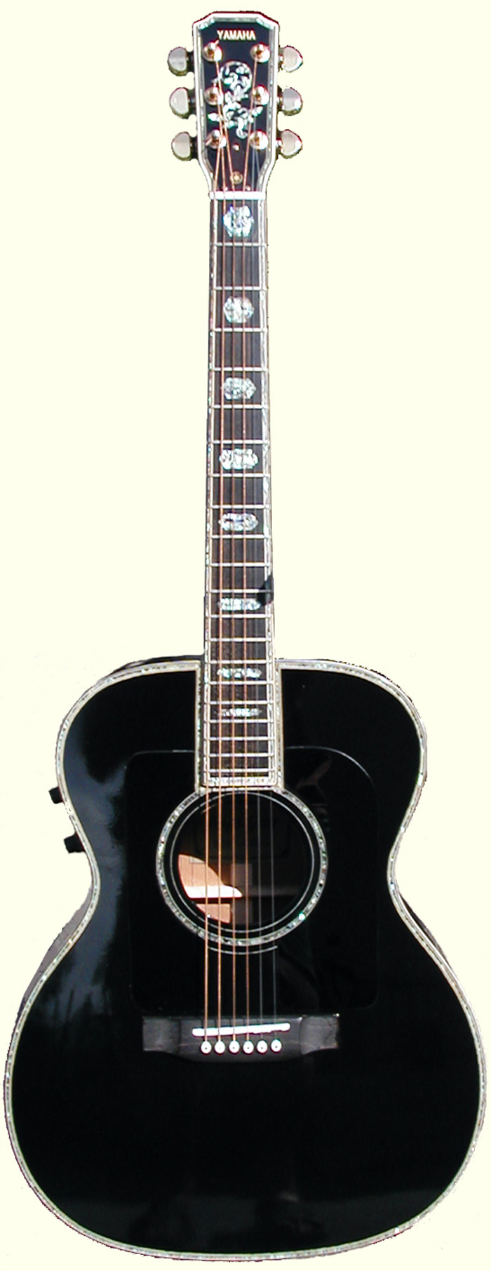 中古で出ると恐ろしい高額になるXSシリーズを再度製作しました。ヤマハにはベースに出来るセミジャンボタイプのギターがないので、TOP・指板周り・指板・サウンドホール・ヘッド周りと、至る所にアバロンの入った超豪華なBUGSを使いました。新庄のカスタムギターもグレードUP単板化推進中(笑)という事で、ボディーはマホガニーのオール単板で、安価で入手した新品のバグズを使ってます。改造点は全面ブラック塗装、ヘッドの形状変更ならびにロゴをYAMAHAに。(笑) ピックアップはYAMAHAのLシリーズのエレアコから外した純正プリアンプにB-BANDのUSTを付けてあります。ピックガードはポールサイモンタイプを製作して装着。これで本物よりちょっと豪華なXSの完成です。坂崎幸之助しが昔愛用していたXS。これでアルフィーのコピーでもやりますか?(笑) |