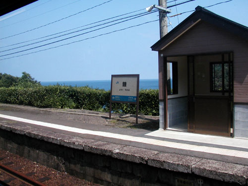 鎧駅着。いよいよ次の餘部駅との間に餘部鉄橋があります。 |