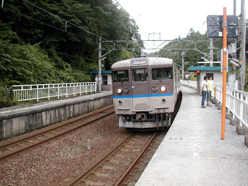 | 往きは良かったんですが、帰りに問題発生!前日の大雨で土砂崩れが発生。この山の中の駅で2時間も立ち往生!まぁのどかな風景の中、駅弁食べてビール飲んで列車が動くのを待ちました。これもまた旅の楽しみですなぁ。 | ||