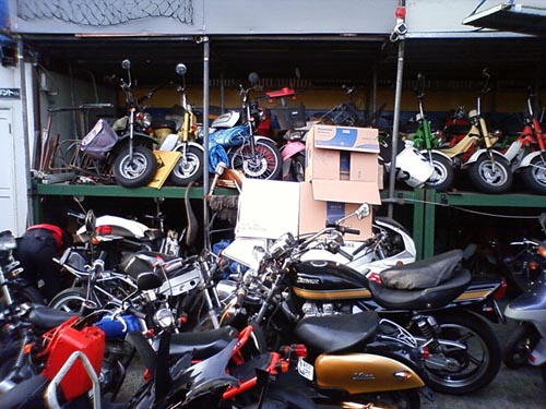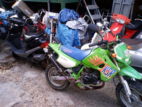 勿論現行モデルのカスタムもやってます。ここの凄いところは、いくらで○○の中古探してって頼めるところです。(笑) とにかく単車に詳しい。正直な話、規制が厳しくなって現行車には旧車のような爆発的魅力が薄くなってます。ならば何とかポンコツでも旧車を入手して走るように整備して走るのが最高でしょう!ここにくればそんなロマンがあります。 |