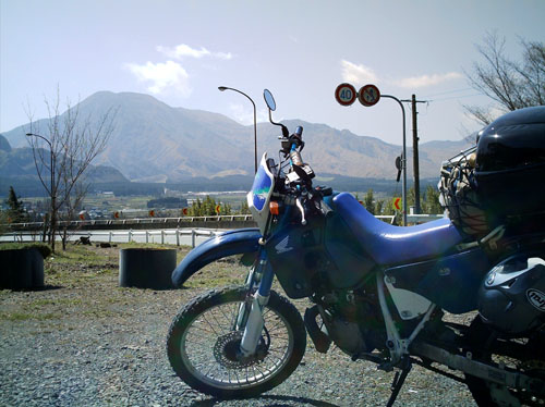 阿蘇山の北側を通るルートなので阿蘇は太陽の方向になります。メチャクチャ快晴でした。 |