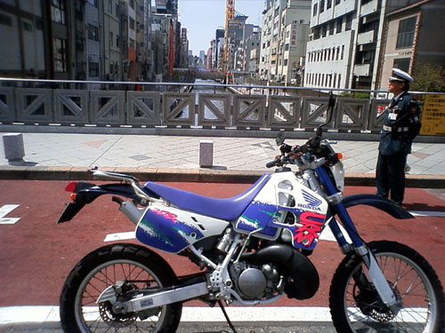 大阪の観光スポットは単車で近寄るのが難しい場所ばかりです。わかり難いかもしれませんが道頓堀です。この川でカーネルサンダースは泳ぎました。 |