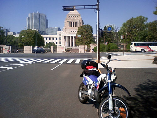 東京は走るとこ走るとこ名所があるので画になりますなぁ。国会議事堂です。 |