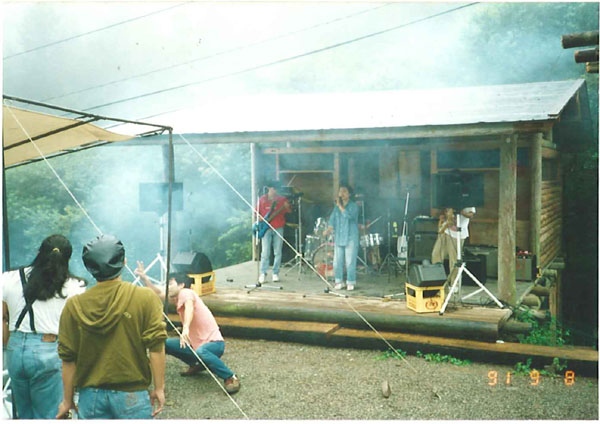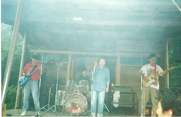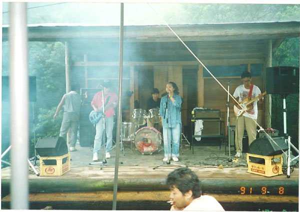 | 韮崎から山を上ること40分。ノースランドは遮るものなく富士山の見える会員制のコテージ。標高が高いので9月だというのに寒くて、パジャマのままステージに立っております。(爆) | ![]() |