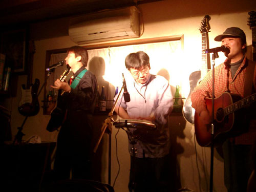 MORRIS MG−601。くりさんのこのギターはうちのリーダーがELSEデビューライブで使っていたものです。くりさんの手に渡って豪華にリメイクされてます。恒例となった居酒屋 純のライブ。今日もたくさん仲間が集まってくれました。おおきにです。 |