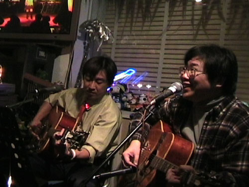 YAMAHA L12-5 by cha-ku cha-ku。やってきました!念願のフォークdeナイト。今日はクリスマスdeナイトです。せ〜兄貴と2setやりました。これは後半、12弦で狂った果実・今だれ・チャンピオンです。 GIBSON S-JUMBO byせ〜やん。兄貴は下にも出演という事でモニターで伺いながらの演奏です。久々のELFAで盛り上がりました。 |
