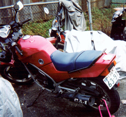 ハーフカウルのデザインも気に入っていたのですが、晩年は遊び心で、よりネイキッドっぽくカウルを取り払い、丸型ヘッド、カラーもモノカラーにして乗ってました。